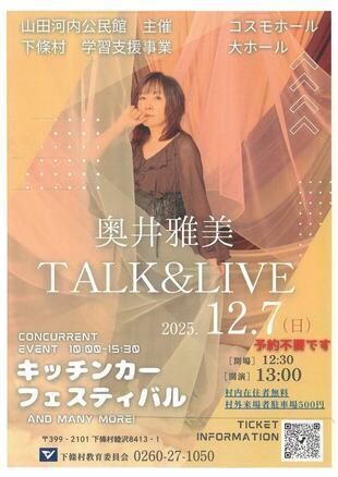 トップ > 行政情報 > 各課からのお知らせ > 教育委員会 > 奥井雅美TALK&LIVEのご案内